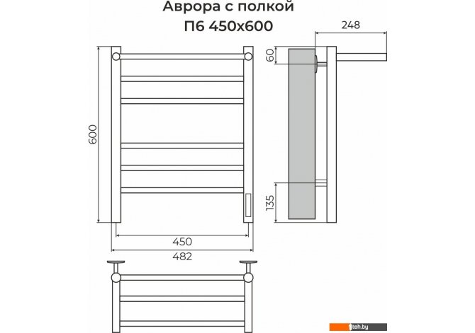 Фотографии, описание и технические характеристики модели полотенцесушителя TERMINUS Аврора П6 450x600 (с полкой, quick touch, КС 9005) взяты из открытых источников, официального сайта производителя или представительства TERMINUS в Республике Беларусь.