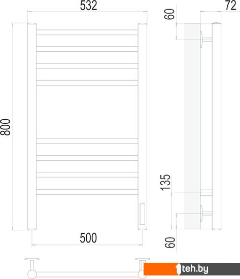 Полотенцесушители TERMINUS Аврора П8 500x800 КС 9003 электро (белый)