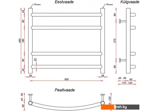 | Комплектация | полотенцесушительдержатели - 4 шт |
