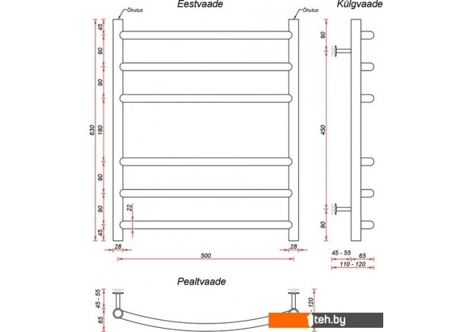 | Комплектация | полотенцесушительдержатели - 4 шт |