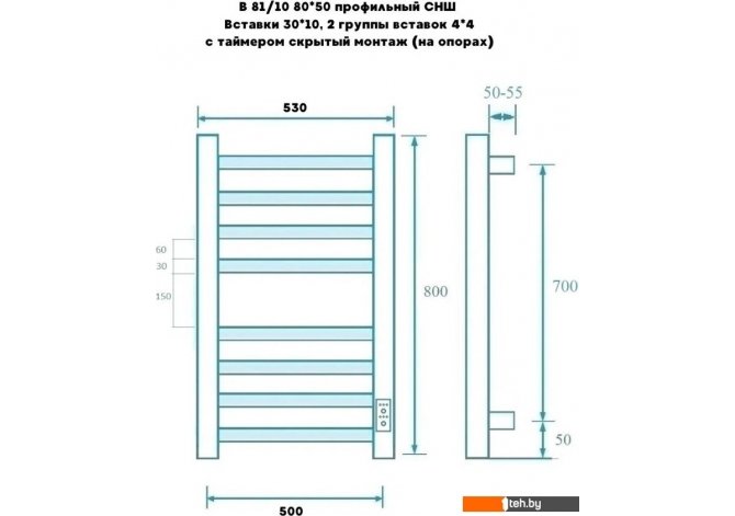 Если хотите купить полотенцесушитель Маргроид Ferrum Вид 81/10 СНШ 80x50 (черный матовый, таймер справа) то следует уточнить все параметры и габариты модели перед покупкой. Представленые характеристики на сайте 1teh.by могут отличаться от действительных или указанных производителем. Описание, фото товара и технические характеристики представлены для справки.
