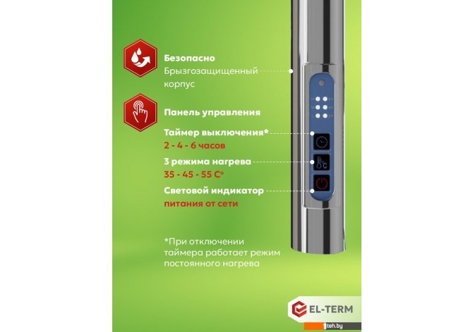 | Информация | -Ключевые характеристики Электрический полотенцесушитель с пятью равноудалёнными перекладинами в форме дуги, выполненный из нержавеющей стали AISI 304L. Модель предназначена для помещений площадью до 3 м?, потребляет 120 Вт при напряжении 220 В и имеет степень защиты IPX4. -Преимущества и отличия Устройство оснащено универсальным скрытым подключением к электросети и регулируется с помощью терморегулятора с тремя температурными режимами (35°/45°/65°) и таймера на 2, 4 или 6 часов. Лазерная сварка обеспечивает прочность и долговечность конструкции. -Практичность Компактные размеры (432x700x89 мм) и небольшой вес (3 кг) позволяют легко монтировать прибор в ограниченном пространстве. Телескопическое крепление и комплект скрытого монтажа обеспечивают удобство установки и надёжную фиксацию. -Уникальность Глянцевое хромированное покрытие придаёт современный внешний вид и защищает от коррозии. Диаметр труб коллектора и перекладин оптимизирован для эффективного теплообмена, а наличие терморегулятора и таймера повышает комфорт использования. Читать дальше |
