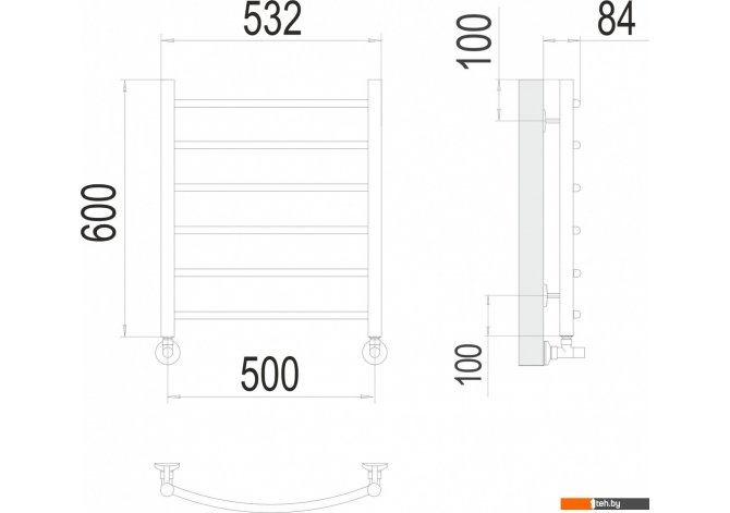 | Информация | ? Полотенцесушитель TERMINUS Классик П6 500x600 нп - водяной тип полотенцесушителя с нижним подключением и формой лесенки. ? Он имеет 6 перекладин, равноудаленную группировку и размеры 600 мм в высоту и 532 мм в ширину, с межосевым расстоянием 500 мм. ? Теплоотдача составляет 198 Вт, рабочее давление 3-15 Атмосфер, а давление испытаний 20 Атмосфер. ? Комплектация включает в себя телескопические держатели к стене, кран Маевского, заглушку и паспорт изделия. |