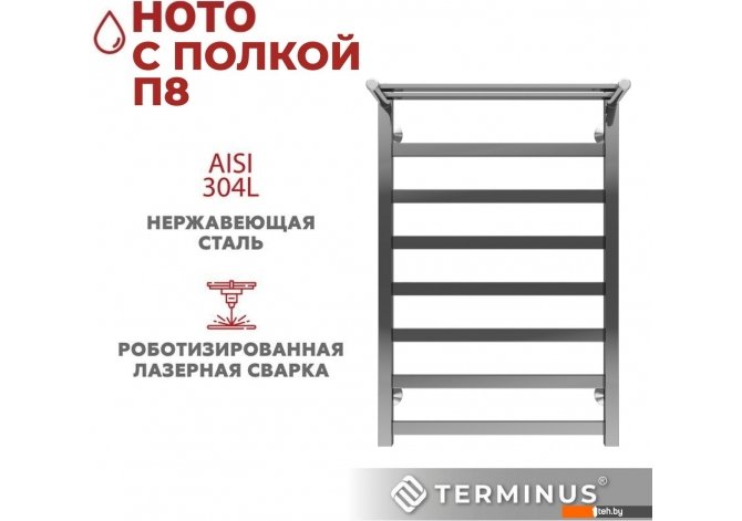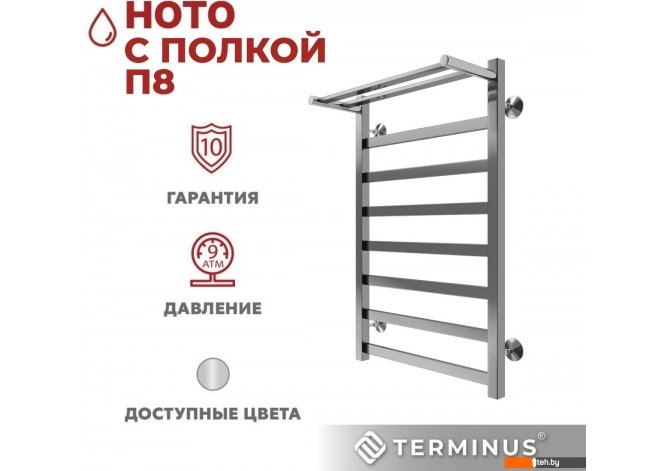 Фотографии, описание и технические характеристики модели полотенцесушителя TERMINUS Ното П8 500x800 (с полкой ) взяты из открытых источников, официального сайта производителя или представительства TERMINUS в Республике Беларусь.