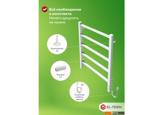 Фотографии, описание и технические характеристики модели полотенцесушителя El-term Рейн П5 500х700 КС (9003 матовый) взяты из открытых источников, официального сайта производителя или представительства El-term в Республике Беларусь.