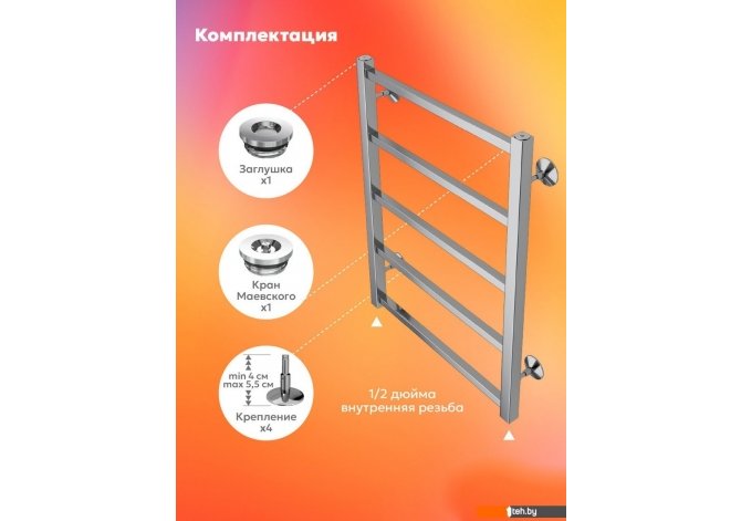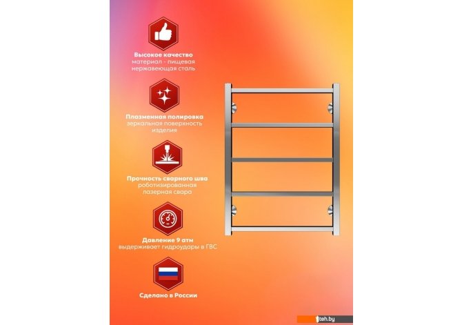 Если хотите купить полотенцесушитель El-term Рейн П5 500х700 то следует уточнить все параметры и габариты модели перед покупкой. Представленые характеристики на сайте 1teh.by могут отличаться от действительных или указанных производителем. Описание, фото товара и технические характеристики представлены для справки.