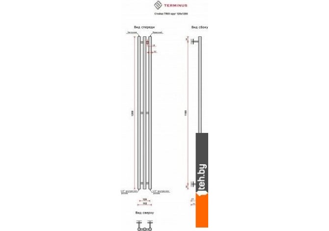 Фотографии, описание и технические характеристики модели полотенцесушителя TERMINUS Стойка Trio Круг 120х1200 (матовое золото) взяты из открытых источников, официального сайта производителя или представительства TERMINUS в Республике Беларусь.