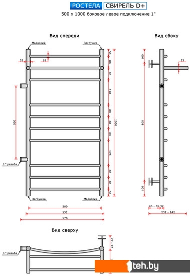 Фотографии, описание и технические характеристики модели полотенцесушителя Ростела Свирель D+ боковое левое подключение 1" 50x100 см взяты из открытых источников, официального сайта производителя или представительства Ростела в Республике Беларусь.