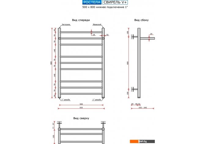 Если хотите купить полотенцесушитель Ростела Свирель V+ 500x800/10 1" (Ral 9005, нижнее подключение) то следует уточнить все параметры и габариты модели перед покупкой. Представленые характеристики на сайте 1teh.by могут отличаться от действительных или указанных производителем. Описание, фото товара и технические характеристики представлены для справки.