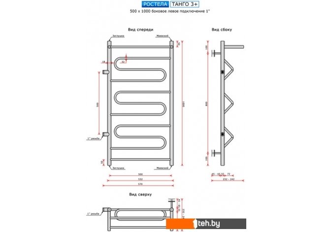 Фотографии, описание и технические характеристики модели полотенцесушителя Ростела Танго 3+ 1" боковое левое подключение 50x100 см взяты из открытых источников, официального сайта производителя или представительства Ростела в Республике Беларусь.