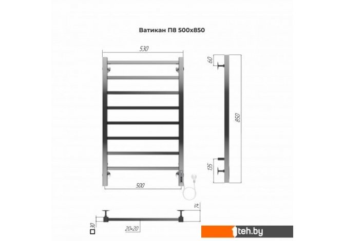 Фотографии, описание и технические характеристики модели полотенцесушителя TERMINUS Ватикан П8 500x850 электро взяты из открытых источников, официального сайта производителя или представительства TERMINUS в Республике Беларусь.
