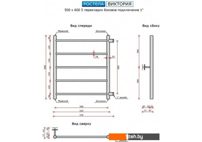 Если хотите купить полотенцесушитель Ростела Виктория 500х600/5 1" (Ral 9016, боковое подключение) то следует уточнить все параметры и габариты модели перед покупкой. Представленые характеристики на сайте 1teh.by могут отличаться от действительных или указанных производителем. Описание, фото товара и технические характеристики представлены для справки.