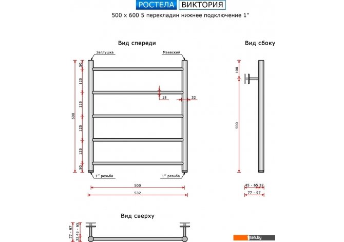 Если хотите купить полотенцесушитель Ростела Виктория 500x600/5 1" (Ral 9016, нижнее подключение) то следует уточнить все параметры и габариты модели перед покупкой. Представленые характеристики на сайте 1teh.by могут отличаться от действительных или указанных производителем. Описание, фото товара и технические характеристики представлены для справки.