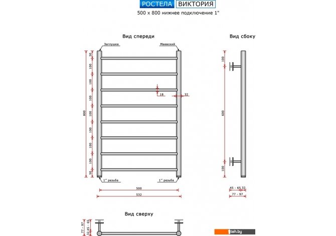 Фотографии, описание и технические характеристики модели полотенцесушителя Ростела Виктория 500x800/8 1" (Ral 9005, нижнее подключение) взяты из открытых источников, официального сайта производителя или представительства Ростела в Республике Беларусь.