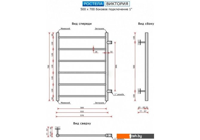 Фотографии, описание и технические характеристики модели полотенцесушителя Ростела Виктория 50x70/6 1" (Ral 9005, боковое подключение) взяты из открытых источников, официального сайта производителя или представительства Ростела в Республике Беларусь.