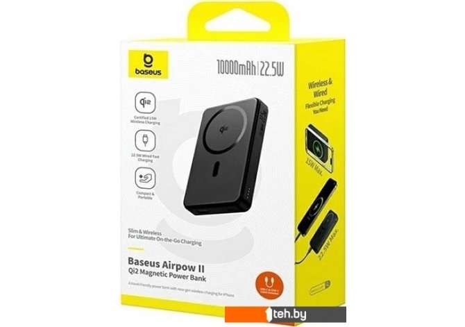 Фотографии, описание и технические характеристики модели переносного аккумулятора Baseus Airpow II Qi2 Magnetic Power Bank 22.5W 10000mAh (черный) взяты из открытых источников, официального сайта производителя или представительства Baseus в Республике Беларусь.