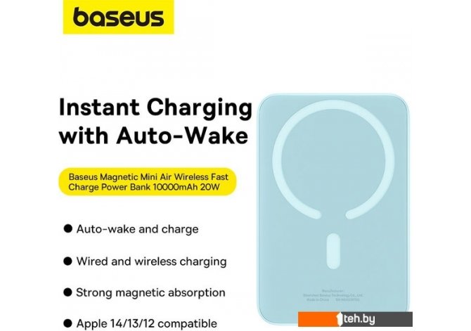 Фотографии, описание и технические характеристики модели переносного аккумулятора Baseus Magnetic Mini Air Wireless Fast Charge Power Bank 20W 10000mAh (голубой) взяты из открытых источников, официального сайта производителя или представительства Baseus в Республике Беларусь.