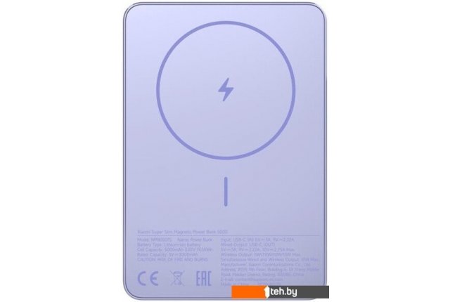 Фотографии, описание и технические характеристики модели переносного аккумулятора Xiaomi Super Slim Magnetic Power Bank 5000mAh WPB0507S (сиреневый, международная версия) взяты из открытых источников, официального сайта производителя или представительства Xiaomi в Республике Беларусь.