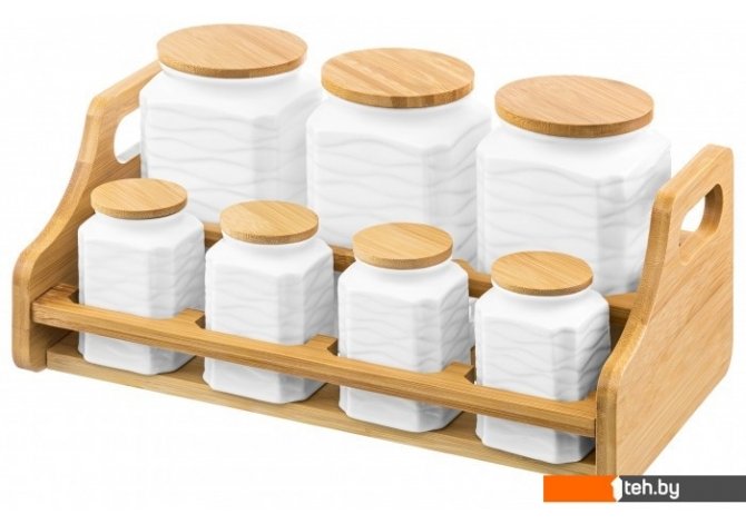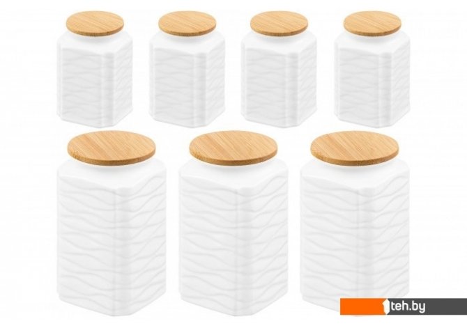 | Информация | - Набор из 7 банок для хранения на бамбуковой подставке с ручками выполнен из белого фарфора и украшен рельефными узорами. - В комплект входят 3 емкости по 600 мл (размер каждой 8х8х14.5 см) и 4 емкости по 150 мл (размер каждой 5.5х5.5х8.5 см). Размер подставки 31.7х17.7х12.7 см. - Баночки имеют крышки из натурального бамбука с силиконовыми уплотнителями. - Фарфоровые баночки станут удобным и эстетичным дополнением вашей кухни и позволят хранить любые продукты, например, перец, сахар или орешки. - Благодаря силиконовому уплотнителю крышечка плотно прилегает к банке, что защитит продукты от пыли, предотвратит риск их рассыпания и сохранит аромат. Кухонный инвентарь на подставке можно хранить не только в шкафу, но и на столе и открытых полках. Удобно использовать для сухофруктов, орехов и даже мармелада. - Посуда понравится любителям классического и скандинавского стилей. Банки для сыпучих продуктов с бамбуковыми крышками позволят не просто хранить чай, кофе и сахар на вашей кухне, они станут элементом ее декора. - Кухонные баночки выполнены в универсальном дизайне и подойдут к интерьеру в любом стиле. - Храните соль, приправы и специи в одном месте, чтобы все необходимое было под рукой. - Комплект подойдет для сервировки любых сладостей: джема, варенья и меда. - Не рекомендуется применять абразивные моющие средства. Фарфоровые изделия без бамбуковых деталей можно использовать в микроволновой печи и посудомоечной машине. - Бамбуковые детали нельзя замачивать! - Поставляется в стильной картонной упаковке. - Комплект станет приятным подарком для любой хозяйки. Красивые банки для хранения станут украшением интерьера любой кухни и могут быть использованы для печенья, как сахарница или медовница. |
