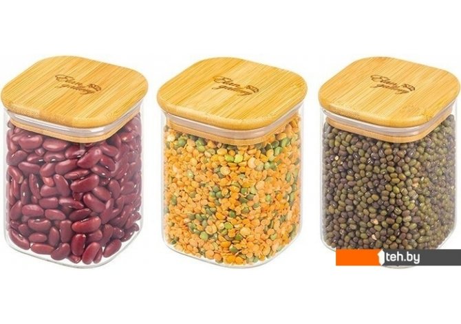 | Размеры контейнеров в наборе | Диаметр/ширина: 8 см (3 шт.), высота: 11 см (3 шт.) |