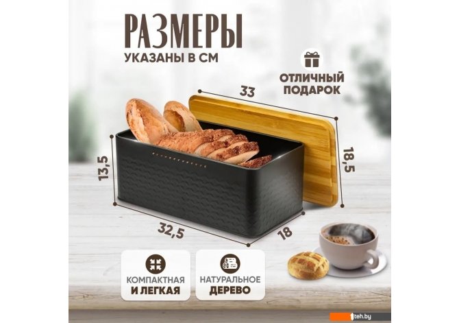 | Размеры контейнеров в наборе | 32.5 см (хлебница), 33 см (крышка-доска) |