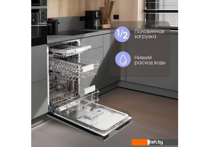 | Информация | - Встраиваемая посудомоечная машина Zigmund & Shtain DW 301.4 имеет компактные размеры — ширина всего 45 см, что делает её идеальной для малогабаритных помещений. Несмотря на это, она вмещает до 11 комплектов посуды, что делает её отличным выбором для семей любого размера. Три корзины, включая отдельную для столовых приборов, полка для чашек и регулируемые по высоте корзины, обеспечивают удобство загрузки. - Основные преимущества этой модели включают 7 программ мытья, среди которых интенсивная, быстрая и автоматическая. Функция половинной загрузки позволяет экономить ресурсы, а низкий расход воды — всего 9 литров за цикл — заботится не только о чистоте посуды, но и об окружающей среде. Класс энергопотребления A++ гарантирует эффективное использование электроэнергии и снижает ваши счета. - Защита от протечек AquaStop обеспечивает полную безопасность даже при длительном использовании. Современный LED-дисплей информирует о нехватке соли и ополаскивателя, а также предлагает функцию отложенного запуска до 24 часов. Подсветка "луч на полу" сигнализирует о статусе работы машины, так что вы всегда будете в курсе завершения процесса. - Эта посудомоечная машина не только практична, но и станет стильным дополнением любой кухни, придавая вашему пространству элегантность. Надежность, экономичность и удобство — вот что делает DW 308.4 незаменимым решением для вашего дома. |