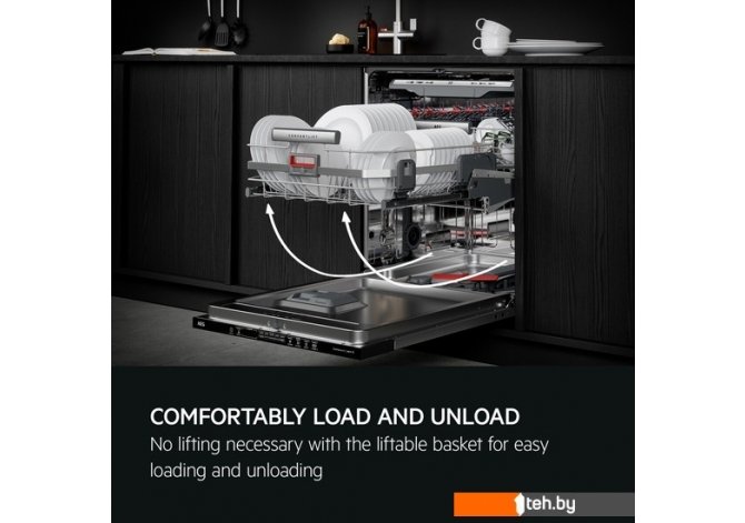 | Особенности верхней корзины | регулировка положения по высоте, резиновые держатели для бокалов, складывающиеся держатели |