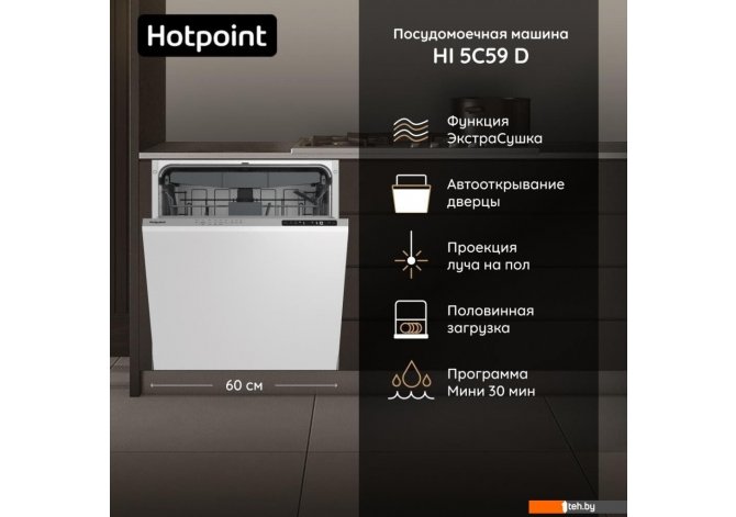 Фотографии, описание и технические характеристики модели посудомоечной машины Hotpoint HI 5C59 D взяты из открытых источников, официального сайта производителя или представительства Hotpoint в Республике Беларусь.