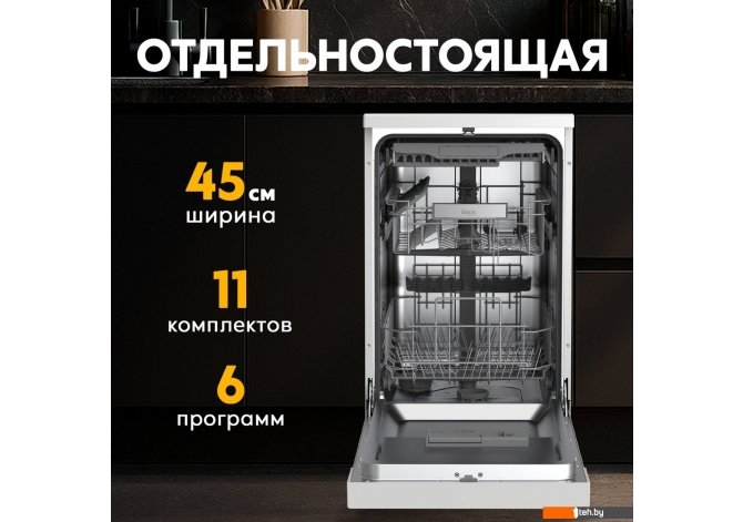 | Информация | -Ключевые характеристики Посудомоечная машина рассчитана на 11 комплектов посуды и оснащена 6 программами для разных типов загрязнения, обеспечивая эффективную мойку при расходе воды 9 литров за цикл. Компактная ширина 45 см и высота 84.5 см делают устройство удобным для небольших кухонь, а сенсорное управление и LED-дисплей упрощают настройку работы. -Преимущества и отличия Модель отличается высокой энергоэффективностью класса A++ и надежной системой защиты от протечек AquaStop. Функция отложенного старта до 24 часов позволяет запускать мойку в удобное время, а возможность дозагрузки посуды в середине цикла добавляет гибкости использования. -Практичность Складные держатели в корзинах обеспечивают удобную загрузку крупных предметов. Защита от детей предотвращает случайное изменение настроек, а звуковой сигнал завершения цикла и информативные индикаторы повышают комфорт эксплуатации. -Уникальность В модели предусмотрен потолочный распылитель для тщательной мойки в верхней корзине и конденсационная сушка, что минимизирует затраты электроэнергии. Трехлетняя гарантия и широкая сеть сервисных центров делают эксплуатацию устройства максимально надежной и удобной. Читать дальше |
