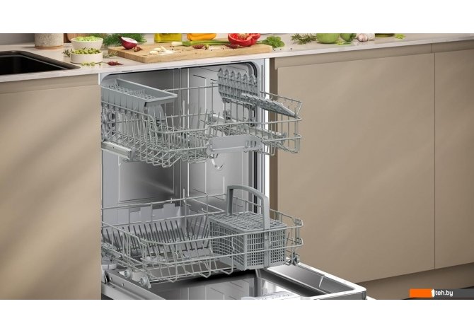 | Информация | -Ключевые характеристики Посудомоечная машина рассчитана на загрузку до 13 комплектов посуды и подходит для установки в кухню с высотой цоколя от 81.5 см. Оснащена шестью программами мойки, включая автоматическую, интенсивную, быструю, эко, ночную и деликатную для стекла. Уровень шума составляет 46 дБ, расход воды за цикл - 9 литров, класс энергоэффективности D, внутренняя камера выполнена из нержавеющей стали и пластика. -Преимущества и отличия Модель выделяется наличием системы теплообменной сушки, полной защитой от протечек AquaStop, мотором EcoSilence Drive и интеллектуальным управлением расходом воды с помощью датчика чистоты. Для максимального удобства предусмотрен третий короб для приборов, регулируемая по высоте верхняя корзина и функция InfoLight с проекцией световой точки на пол. -Практичность Устройство поддерживает удалённое управление через Home Connect и оснащено функцией отложенного старта до 24 часов. Встроенные электронные индикаторы соли и ополаскивателя, а также звуковое оповещение об окончании программы упрощают эксплуатацию. Для эффективной эксплуатации реализована программа самоочистки и режим Machine Care. -Уникальность Модель оснащена системой скользящего фасада Vario Hinge, что облегчает встраивание даже в кухонные гарнитуры с небольшим зазором между фасадами. Технология Hygiene Dry обеспечивает деликатную сушку без температурного шока для стеклянных изделий, а функции VarioSpeed Plus и Hygiene+ делают процесс мойки быстрее и максимально гигиеничным Читать дальше |