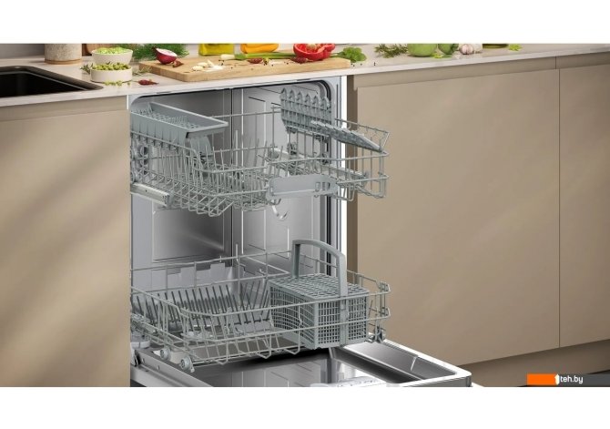 | Информация | -Ключевые характеристики Полноразмерная встраиваемая посудомоечная машина предназначена для семей и больших компаний, максимально вмещает до 13 комплектов посуды. Эффективная сушка обеспечивается теплообменником, а низкое потребление воды - всего 9 литров за цикл - делает технику экономичной в эксплуатации. Мощность подключения 2.4 кВт, уровень шума 46 дБ, ширина корпуса 59.8 см. -Преимущества и отличия Главными преимуществами являются наличие шести программ, включая автоматическую, интенсивную, быструю и деликатную для стекла, а также пять температурных режимов для адаптации к любому типу загрязнений. Полная защита от протечек реализована системой AquaStop, а мотор EcoSilence Drive гарантирует тихую и долгую работу. -Практичность Удобство загрузки обеспечивают две корзины VarioFlex с возможностью регулировки и складными направляющими, специальная корзина для столовых приборов и полочки для чашек. Таймер отложенного старта до 24 часов, индикация InfoLight на полу, электронные индикаторы соли и ополаскивателя, а также возможность управления через Home Connect делают использование максимально комфортным. -Уникальность Модель оснащена функциями VarioSpeed Plus для ускорения мойки, дополнительной сушкой, гигиеническим режимом и программой самоочистки. Сенсор Aqua-Sensor автоматически регулирует расход воды по уровню загрязненности, а инновационный скользящий фасад Vario Hinge облегчает установку даже в кухни с низким цоколем. Читать дальше |
