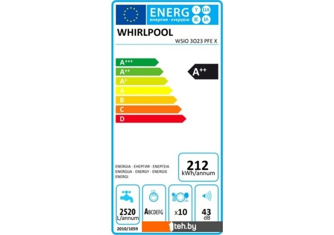 Фотографии, описание и технические характеристики модели посудомоечной машины Whirlpool WSIO 3O23 PFE X взяты из открытых источников, официального сайта производителя или представительства Whirlpool в Республике Беларусь.