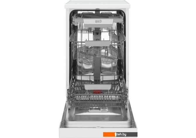 | Информация | -Ключевые характеристики Отдельностоящая посудомоечная машина рассчитана на 10 комплектов посуды и оснащена 7 программами мойки, среди которых есть автоматическая, интенсивная, деликатная и экономичная. Уровень шума составляет всего 44 дБ, что обеспечивает тихую работу устройства, а расход воды за цикл – 8.5 литра. -Преимущества и отличия Модель выделяется наличием автоматического открывания дверцы для лучшей сушки, регулируемой по высоте корзиной и третьим коробом для приборов, что повышает удобство загрузки. Встроенная защита от протечек и блокировка от детей обеспечивают дополнительную безопасность и спокойствие при эксплуатации. -Практичность Электронное управление и дисплей позволяют легко выбирать нужные режимы, а наличие таймера отсрочки старта позволяет запускать мойку в удобное время. Индикаторы отсутствия соли и ополаскивателя, а также датчик чистоты воды обеспечивают стабильное качество мытья без лишних хлопот. -Уникальность Система сушки с автоматическим открыванием дверцы обеспечивает высший класс сушки и помогает экономить электроэнергию. Компактная ширина 44.8 см делает эту модель отличным выбором для небольших кухонь без потери функциональности и вместимости. Читать дальше |