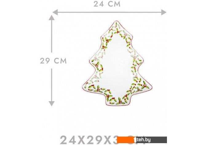 | Информация | ? Фарфоровое блюдо в форме ели может использоваться в качестве тарелки для сервировки, подноса, подставки для украшений, плоского или фигурного блюда. ? Можно использовать для подачи сыров, овощей, рыбы, закусок, десертов, салатов, нарезок, фруктов и для сервировки новогоднего стола. ?? Размер в упаковке: 28х28х10 см. ? Упаковка: картонная коробка. |