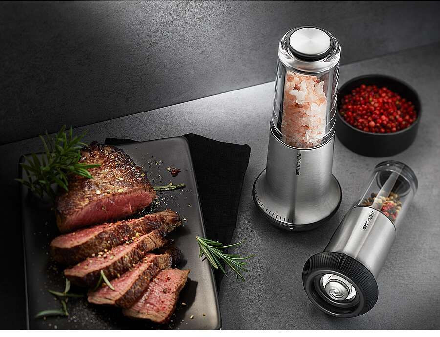 Информация | - Мельница для специй Gefu X-plosion L 34629 (нержавеющая сталь) - инновационное сочетание современного дизайна, передовых технологий и немецкого качества. - Высококачественный керамический измельчающий механизм CYCLONE® для максимальной точности и эффективности. - Внешняя 16-ступенчатая регулировка измельчения - от экстра-мелкого до крупного помола. - Контейнер для специй с широким горлышком – для удобства наполнения. - Герметичная крышка для «запирания» ароматов и защиты от влаги. - Высококачественная нержавеющая сталь, керамика, алюминий, пластик. - Размер: ? 7,5 см, высота 18,5 см. - Дизайнерская серия от GEFU X-PLOSION® устанавливает новые стандарты измельчения специй благодаря продуманным мельницам, сверхострым измельчителям для перца чили, стильным шейкерам и другим интеллектуальным инновационным товарам. X-PLOSION®: сила свежего вкуса и аромата для современной творческой кухни. |