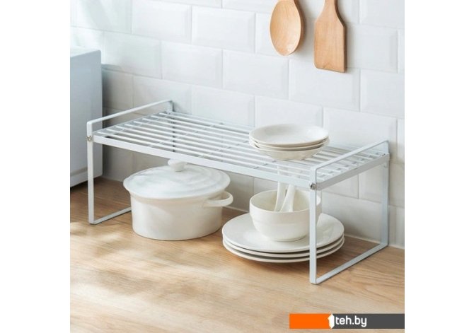 | Информация | Полочка — подставка поможет сэкономить место на вашей кухне. Позволяет организовать многоуровневое хранение. Может быть использована на рабочей поверхности или в шкафу. Изготовлена из металл с антискользящим виниловым покрытием (сушилка не ржавеет и не пылится, что значительно увеличивает срок службы). Благодаря складной конструкции ее удобно хранить (занимает минимум места). |