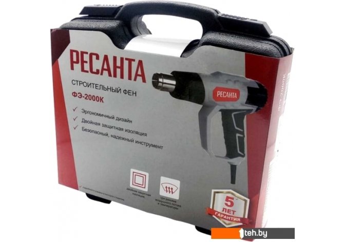 Фотографии, описание и технические характеристики модели строительного фена Ресанта ФЭ-2000К взяты из открытых источников, официального сайта производителя или представительства Ресанта в Республике Беларусь.