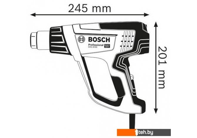 Фотографии, описание и технические характеристики модели строительного фена Bosch GHG 20-63 Professional 06012A6201 взяты из открытых источников, официального сайта производителя или представительства Bosch в Республике Беларусь.
