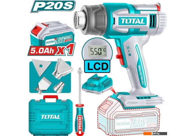 Фотографии, описание и технические характеристики модели строительного фена Total TBLI20035 (с 1-им АКБ, кейс) взяты из открытых источников, официального сайта производителя или представительства Total в Республике Беларусь.