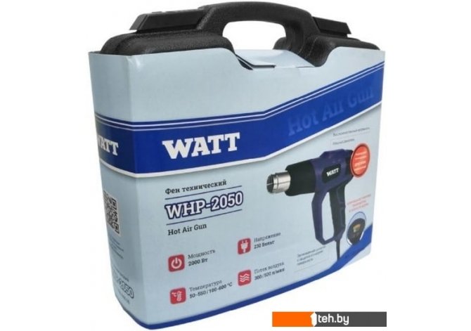Если хотите купить строительный фен WATT WHP-2050 7.020.005.00 то следует уточнить все параметры и габариты модели перед покупкой. Представленые характеристики на сайте 1teh.by могут отличаться от действительных или указанных производителем. Описание, фото товара и технические характеристики представлены для справки.