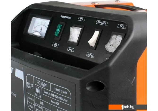 | Информация | Устройство для бытового полупрофессионального или профессионального использования. Предназначено для зарядки свинцовых, кислотных аккумуляторов напряжением 12В и 24В. Ускоренный режим зарядки с повышенным током. Устройство высокого качества, удобно в использовании, оснащено переключателем напряжения, тока, амперметром, защитой от перегрузки, неправильной полярности, короткого замыкания. Отсек для хранения проводов. |