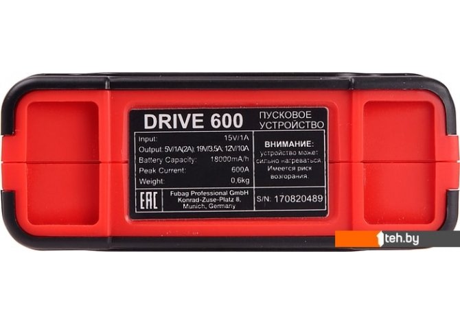 Фотографии, описание и технические характеристики модели подкуривателя Fubag DRIVE 600 взяты из открытых источников, официального сайта производителя или представительства Fubag в Республике Беларусь.