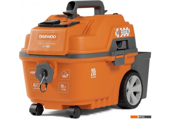 | Информация | Высокопроизводительный двигатель DAEWOO. Электрический двигатель DAEWOO мощностью 1500 Вт в сочетании с высокопроизводительной турбиной обеспечивают разряжение 250 мбар и высокую производительность уборки. Класс фильтрации М. Система фильтрации с HEPA фильтром обеспечивает удержание до 99,9% частиц пыли. Бак из ударопрочного пластика. Компактный корпус пылесоса выполнен из современного, ударопрочного пластика с толщиной стенки 3 мм. Стойкий к механическим воздействиям и коррозии. Объем бака 20 литров. Розетка для электроинструмента. Встроенная розетка позволяет подключать к нему электроинструменты мощностью до 2000 Вт. Автоматическое включение пылесоса при начале использования инструмента и отключение с задержкой для удаления грязи из шланга. 4 в 1. Пылесос сочетает в себе 4 функции, расширяя сферы применения: Сухая уборка и сбор сухого мусора Влажная уборка и сбор воды Выдувание Хранение аксессуаров Корзина для аксессуаров. Корзина, расположенная на корпусе пылесоса, позволяет разместить в себе все необходимое для уборки. Шланг увеличенной длины 4 м. Шланг длиной 4 м позволяет собирать строительный мусор на высоте, без необходимости поднимать пылесос. Антистатическое покрытие позволяет собирать мелкую пыль, не накапливая статический заряд. Система хранения шланга. Специальные крепления на корпусе пылесоса позволяют удобно смотать шланг для компактного хранения. Расширенная комплектация. В комплектацию пылесоса входит: Щетка для сухой и влажной уборки Щелевая насадка Изогнутая насадка Адаптер для подключения электроинструмента 3 тканевых мешка для сухой уборки Телескопическая штанга. Металлическая штанга увеличивается в длине от 49 см до 84 см позволяет подобрать комфортную высоту для работы. Увеличенные задние колеса. Прорезиненные колеса увеличенного диаметра обеспечивают легкое передвижение пылесоса по любому покрытию. Компактные размеры. Благодаря компактным размерам пылесос не занимает много места при хранении. Низкая высота и центр тяжести делают его стойким к опрокидыванию. |