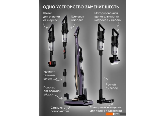 | Дополнительные насадки | насадка-швабра, насадка для шерсти домашних животных, мини-электрощетка, гибкий шланг |
