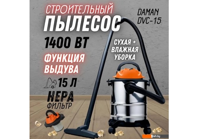 | Информация | - Пылесос Daman DVC-15 предназначен для уборки в помещениях: сбора древесной стружки и опилок, пыли, легких фракций строительного мусора, образовавшегося при работе ручных и электрических машин (сухая уборка) и сбора воды с поверхности пола. |