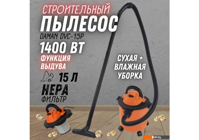 | Информация | - Пылесос Daman DVC-15P предназначен для уборки в помещениях: сбора древесной стружки и опилок, пыли, легких фракций строительного мусора, а также сбора воды с поверхности пола. |