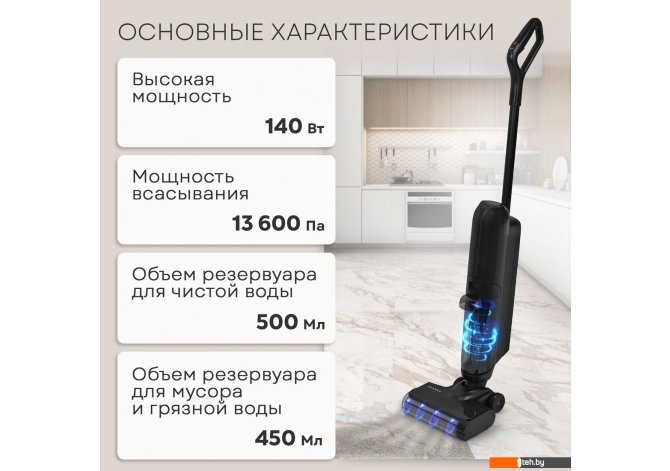 | Функциональные особенности | дисплей, автоматическая мойка швабры, автоматическая сушка швабры |