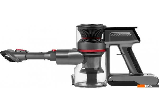 | Информация | Беспроводной вертикальный пылесос RED solution V3070 — полноценная альтернатива тяжелым и неповоротливым традиционным моделям. Сменные насадки, телескопическая трубка, конструкция весом всего 2,3 кг и аккумулятор емкостью 2200 мАч делают V3070 идеальным универсальным инструментом для уборки. BLDC-двигатель нагнетает до 28 кПа — с такой мощностью всасывания даже генеральная уборка станет обычным делом. |