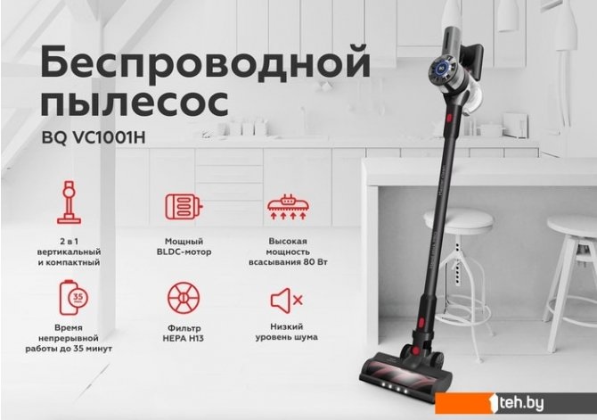 Фотографии, описание и технические характеристики модели пылесоса BQ VC1001H взяты из открытых источников, официального сайта производителя или представительства BQ в Республике Беларусь.