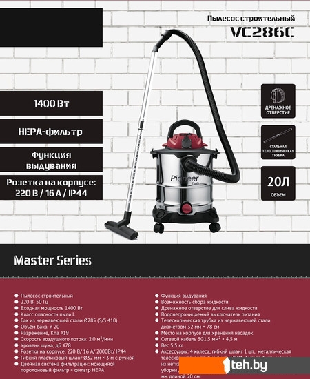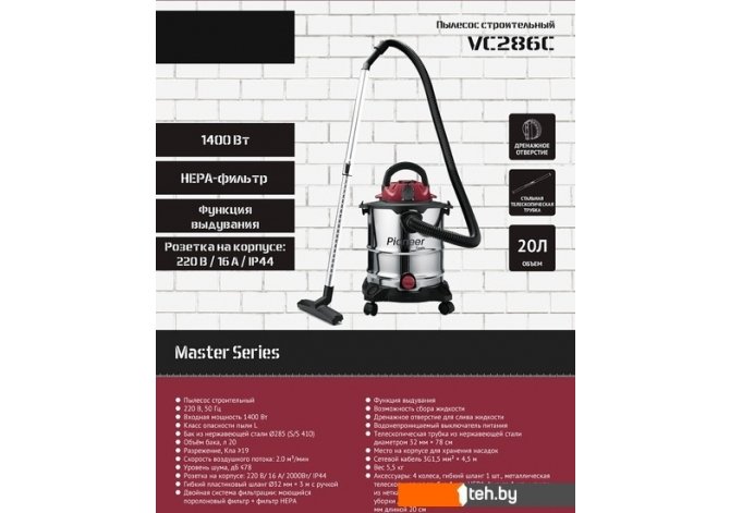 Если хотите купить пылесос Pioneer VC286C то следует уточнить все параметры и габариты модели перед покупкой. Представленые характеристики на сайте 1teh.by могут отличаться от действительных или указанных производителем. Описание, фото товара и технические характеристики представлены для справки.